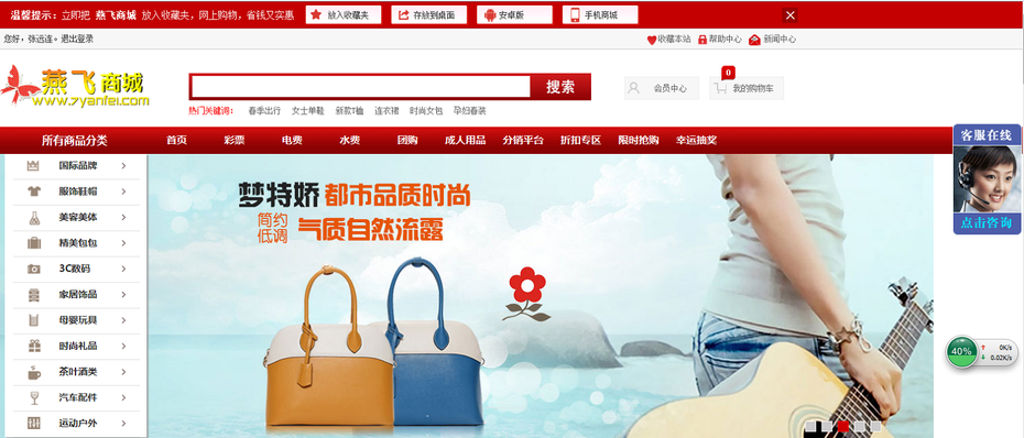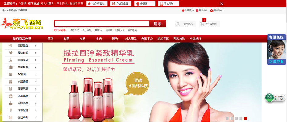 现在随着们物质生活的逐渐提高,我们对生活质量的要求也越来越高,衣食住行,都是我们所追求的生活,燕飞商城包含了这些我们都要追求的东西,从而也喜迎了更多的年轻人前来购物。